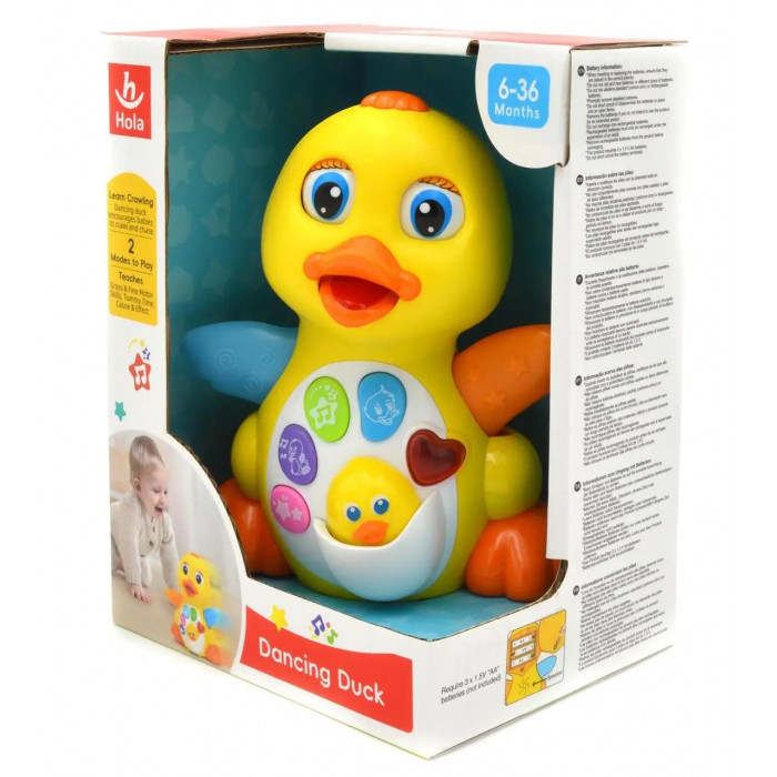 Каченя вміє співати , танцювати, ворушити очима і ротом, крякає, має світлові ефекти на крилах.