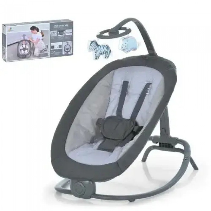 Дитячі качелі шезлонг - це багатофункціональний пристрій 2 в 1, який поєднує функції затишного шезлонгу і заколисуючого центру. Оснащений м'яким підголовником, підвісними іграшками для розваги малюка та електроприводом для плавного заколисування. Музичний супровід створює комфортну атмосферу для сну та відпочинку дитини. Конструкція виконана з металу, пластику та тканини, має 3 регульовані положення люльки та надійний п'ятиточковий ремінь безпеки.