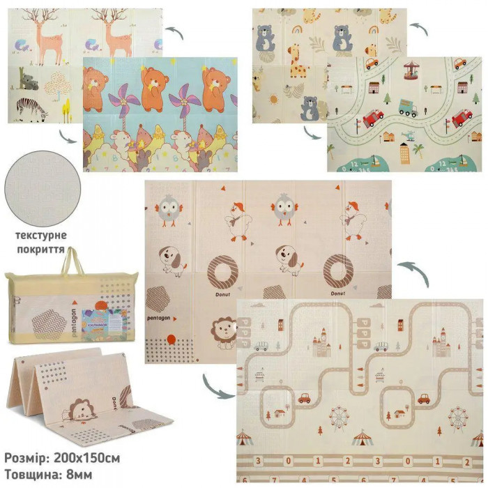 Дитячий термокилимок являє собою складаний килимок для дітей. Він має двосторонній малюнок, що робить його цікавішим.