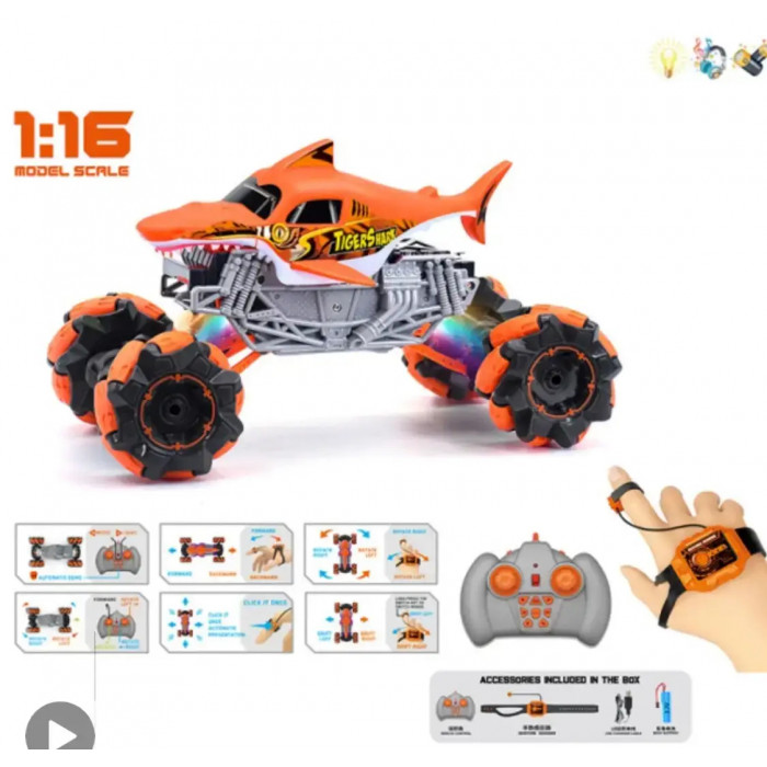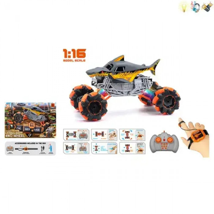 У комплекті йде спеціальний пульт для керування, а також можливість керувати машиною за допомогою рухів рук. Просто порадуйте, за допомогою пульта або створюйте унікальні маневри, підпорядковуючи машину рухам своїх рук. Захоплююче та Легке управління.