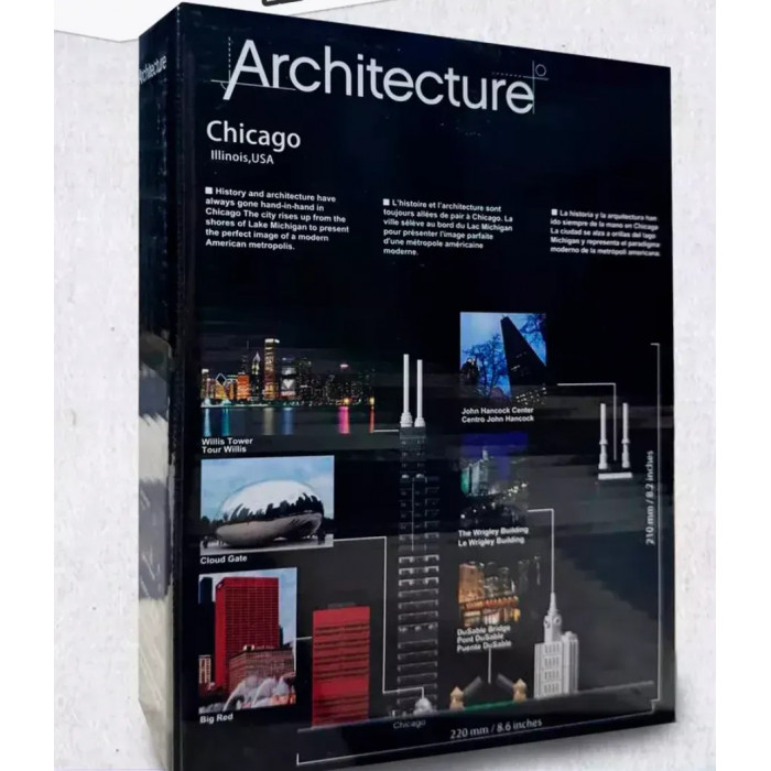 Конструктор Архітектура (арт. L1033) "Чикаго" 444 деталей Конструктор "Чикаго" - ідеальний вибір для підлітків та дорослих, які цінують дизайн та стиль. Ця серія конструкторів створена спеціально для тих, хто захоплюється архітектурою, історією чи просто хоче прикрасити свій будинок чи робоче місце витонченими моделями. Серія включає знамениті архітектурні пам'ятники з усього світу, ретельно відтворені в мініатюрі. Вона ділиться на дві підкатегорії: «Архітектор» — акцент на стилях та епохах «Архітектурні пам'ятки» — знайомство з культовими будинками Кожна модель супроводжується стильним буклетом з історичною довідкою, фактами про об'єкт та інструкціями, що розвивають творче мислення. Познайомтеся з архітектурою Чикаго Відкрийте для себе унікальний архітектурний стиль міста за допомогою набору «Архітектура: Чикаго», в якому представлені: Вілліс-Тауер Центр Джона Хенкока Скульптура «Хмарна брама» (Cloud Gate) Міст на Мічіган-авеню мініатюра точно відтворена в масштабі, з використанням автентичних кольорів та форм. Особливістю є основа з мозаїкою, на яку нанесена річка Чикаго - це додає композиції об'ємності та реалістичності. Переваги: Освітній та естетичний досвід Розвиває просторове мислення та увага до деталей Ідеальний подарунок для любителів архітектури