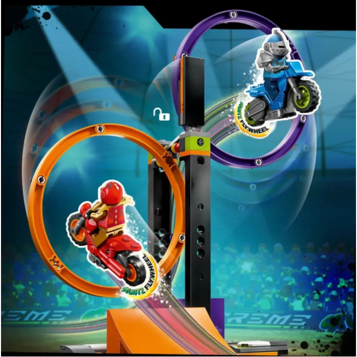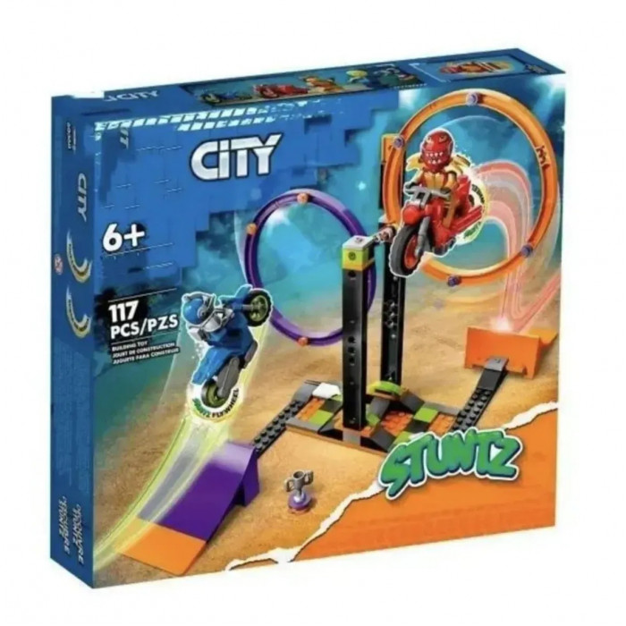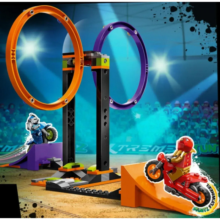 Діти від 6 років можуть влаштовувати захоплюючі шоу, ігри та змагання завдяки набору City Каскадерське завдання з обертанням, що містить подвійне коло для стрибків, що обертаються, дві рампи і два каскадерські мотоцикли з маховиком. Слід додати лише двох водіїв каскадерських мотоциклів і можна розпочинати розваги.