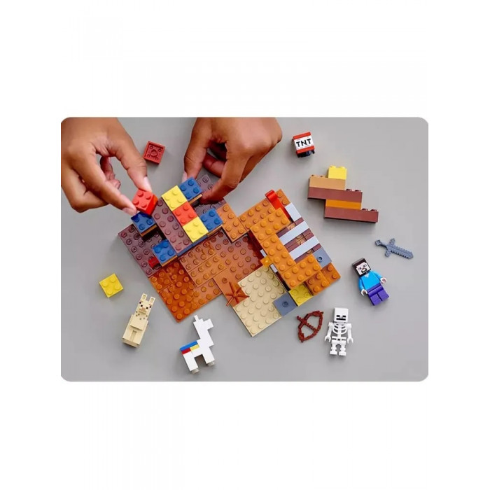 У пластиковому конструкторі Minecraft на шахті вирує робота. Стів активно видобуває цінні ресурси, щоби вирушити до торгового посту. Однак, все йде не за планом. Лами вільно гуляють, щось вибухає, поряд з'являється ворожий скелет, з яким нашому герою доведеться битися, а торговець, здається, не має товарів! Чи є? Поверніть ручку, щоб дізнатися про це.