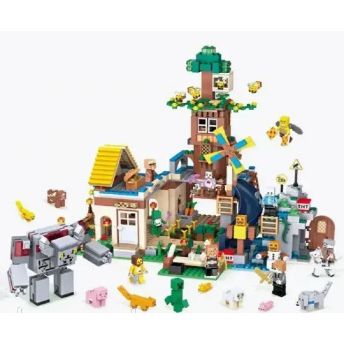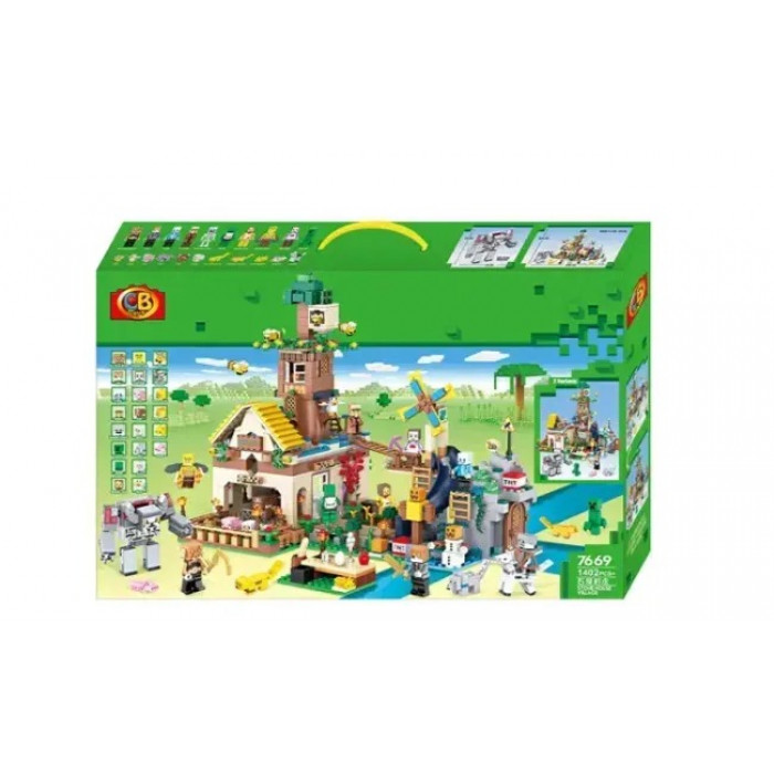 Конструктор Майнкрафт (арт. 7669) будинок з млином,1402 деталі. З 1402 деталей конструктора можна зібрати справжню ферму з млином. Розмір ферми в зібраному вигляді: 48х30 см. Набір складається з декількох локацій - будинок, млин, город, загін з тваринами, дерево з бджолами, оборонна вежа. Конструктор доповнений великою кількістю фігурок, тварин та аксесуарами.