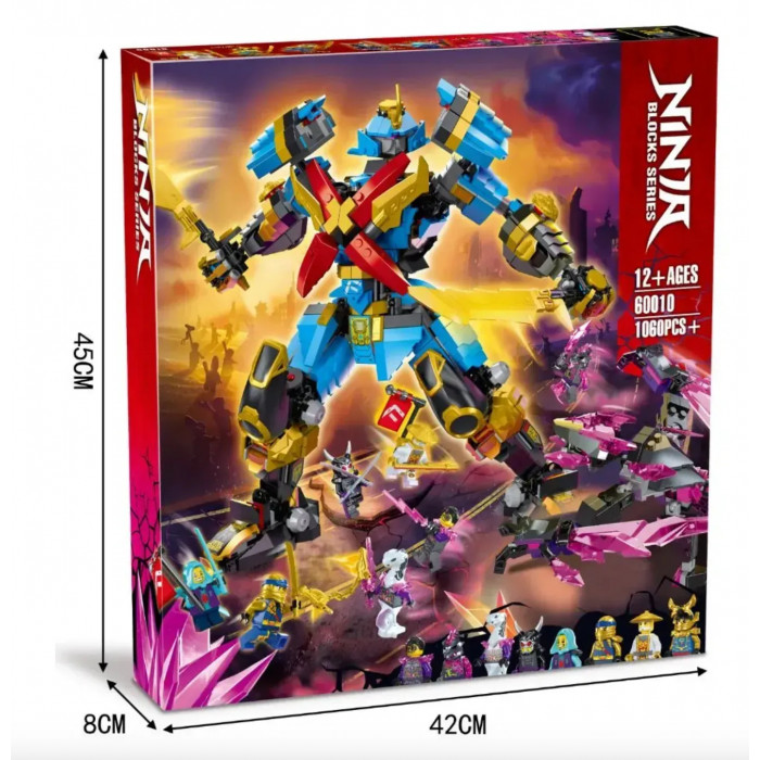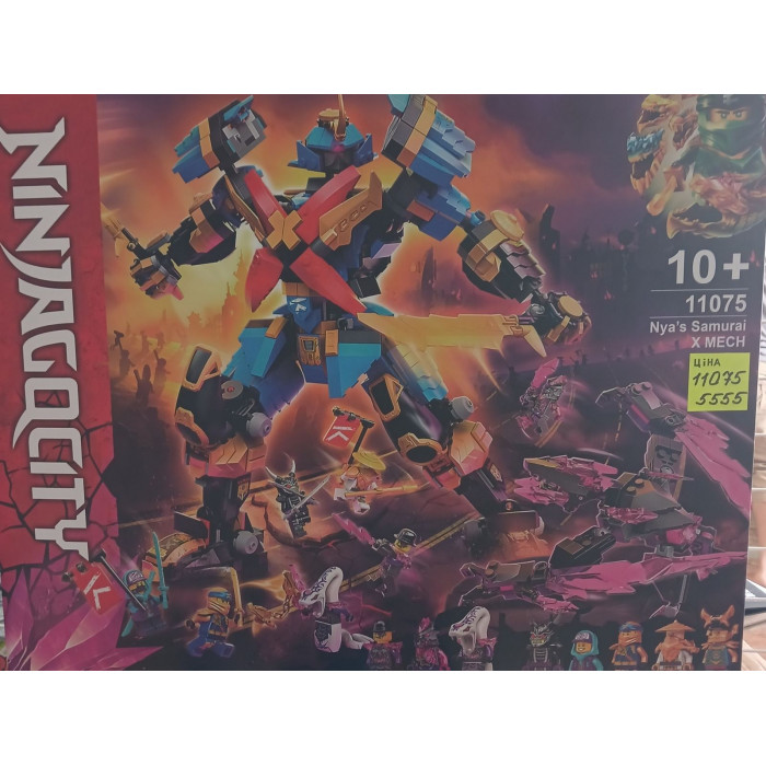 Конструктор Ніндзяго (арт. 11075) "Робот Нії-Самурай Ікс" 1060 деталей Великий ігровий набір 11075 із 1060 деталей переносить дітей у захоплюючий світ Ніндзяго, де на них чекають героїчні битви та пригоди. У центрі уваги – механічний робот Самурай Ікс, якого збирає сам гравець, щоб допомогти Нії у боротьбі з ворогами. Історія протистояння Разом з Нією діти зможуть: Управляти бойовим роботом з двома мечами та пушками, що стріляють; Битися з кристальним монстром; Боротися з армією солдатів кам'яної помсти; Відвоювати стихійну зброю Джея, яку захопив злий генерал Пайтор. Можливості для гри та розвитку Робот має рухливі кінцівки, кабіну для мініфігурки та безліч деталей для активної гри; Фігурки героїв та лиходіїв дозволяють відтворювати сцени з мультфільму або вигадувати власні історії; Розвиває мислення, уяву, дрібну моторику та навички конструювання; Ідеально підходить для дітей віком від 6 років. Упаковка та якість Усі деталі виготовлені з якісного пластику, безпечного для дітей; Комплект поставляється в яскравій подарунковій коробці, що робить його чудовим варіантом подарунка на день народження або на інше свято; Підходить як для самостійної гри, так і для спільного проведення часу з батьками. Створіть свій власний світ Цей набір більше, ніж просто іграшка. Це можливість побудувати власний світ із роботами, героями та дивовижними пригодами. Підходить як для дітей, так і для дорослих шанувальників світу ніндзя.