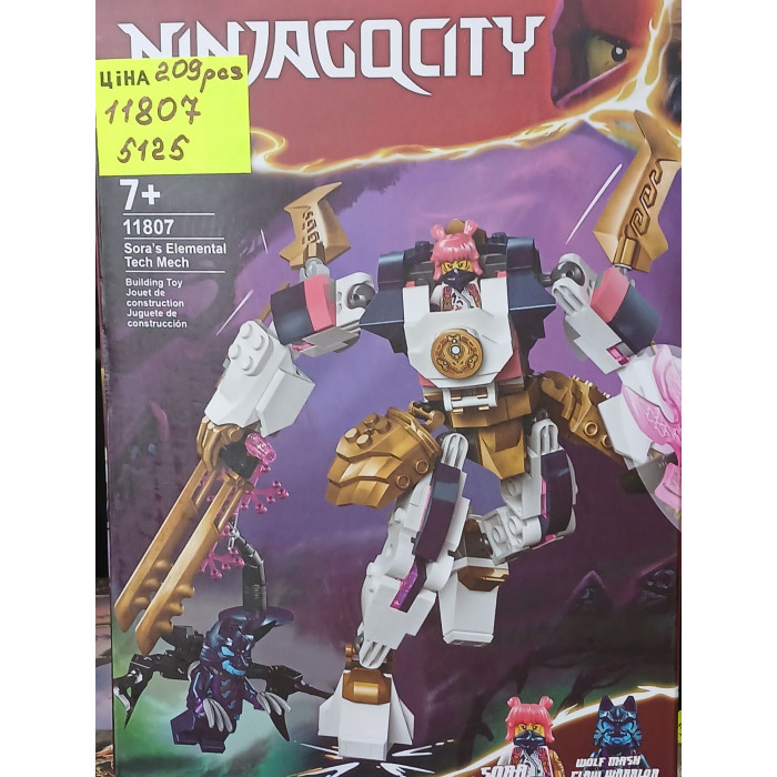 Конструктор Ніндзяго (арт. 11807) Елементальний робот Сорi 209 деталей Конструктор Ніндзяго, Елементальний робот Сорi складається з 209 деталей. кінцівки, він озброєний підвійними мечами та лезом, що обертається. Збери ще одну локацію з світу ниндзя і вирушай на хвилях фантазії у світ пригод.