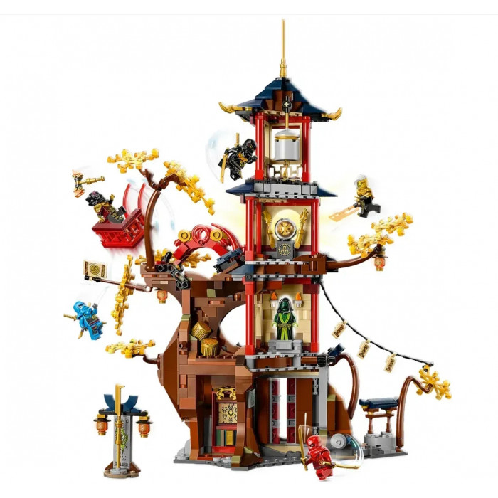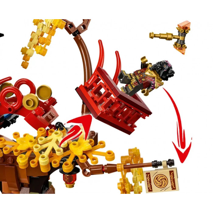 Чотириповерхова іграшка-храм з чарівним деревом, обгорнутим навколо нього, має ряд крутих пасток, зокрема падаючих стовбурів дерев, глибокого балкона і статуї, що руйнується.6 мініфігурок – Кай, Нья та Коул, які приходять із двома золотими катанами кожна, Дух Храму з великим золотим мечем, Лорд Рас із золотим молотом та імператриця Беатрікс зі своїм мечем Імперії.Таємні пастки – у моделі храму є ряд прихованих пасток, зокрема стовбури дерев, що падають, глибокий балкон, статуя, що руйнується, і валуни, що падають у бібліотеці.Найголовніший приз – у храмі також міститься енергетичне ядро дракона, за яке герої борються і є цікавим колекційним предметом для пристрасних шанувальників NINJAGO.Ідея подарунка – цей конструктор із 1029 елементів для дітей від 8 років забезпечує цікавий досвід збору та гри, його можна подарувати на день народження чи святковий подарунок.Показовий предмет – Храм Дракона EnergyCores розміром понад 16,5 дюймів (42 см) заввишки, 13,5 дюймів (35 см) завширшки та 7,5 дюймів (20 см) у глибину експонатом демонстраційного предмета між іграми.