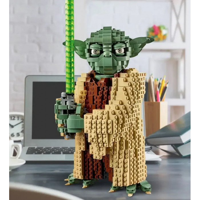 Доповнити колекцію Зоряних війн можна за допомогою конструктора Star Wars Йода. Модель відрізняється ретельно продуманими деталями та дозволяє відтворити епізоди із зіркової саги. У нього рухлива голова, брови, а також пальці рук та ніг. Є світловий меч із особливим зеленим свіченням. Конструктор включає панель, де розміщена інформація про персонажа і стенд для фігурки. Тому створити свою персональну колекцію не складе труднощів. Іграшка може стати гарним подарунком на будь-яке свято чи день народження. При цьому вона сподобається не лише дитині, а й дорослій. Діти можуть вигадувати різні ігри, захоплюючі пригоди, сюжетні лінії, виставляючи майстри Йоду як центральну фігуру. У процесі гри чудово розвиваються уява та стратегічне мислення.
