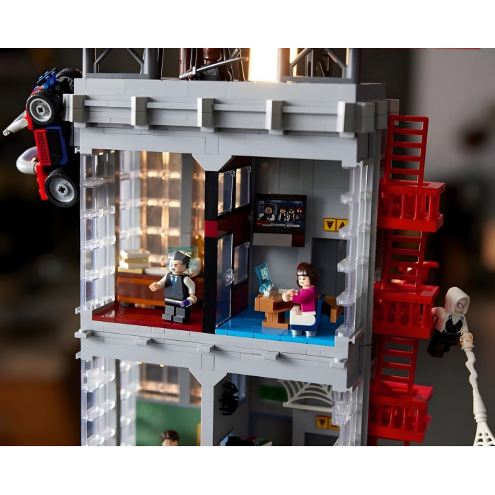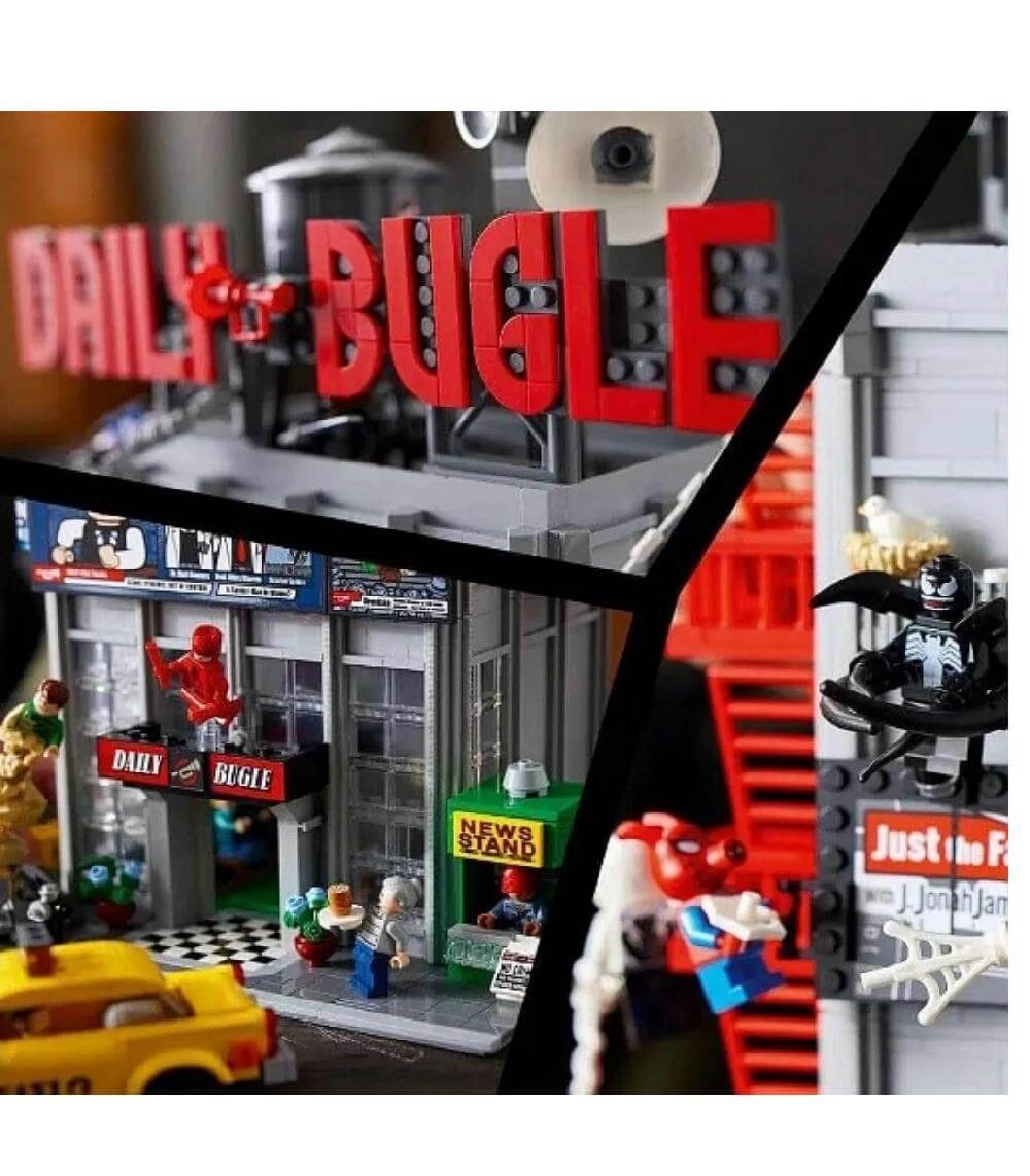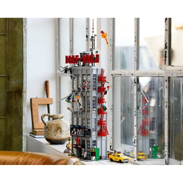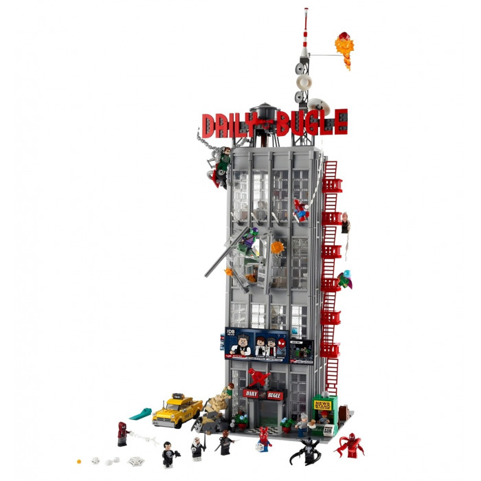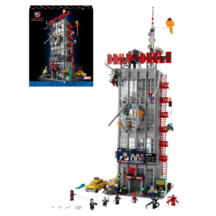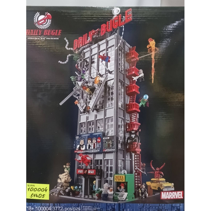 Конструктор Super Heroes (арт. 100004) Дейлі Бьюгл, 3772 деталі . Набір дозволяє зібрати впізнавану чотириповерхову будівлю міської редакції новин, в якій працював молодий фотограф-супергерой. Вражаюча висота та тисячі деталей роблять модель справжнім центром будь-якої колекції та відкривають безмежні можливості для сюжетної гри та демонстрації.