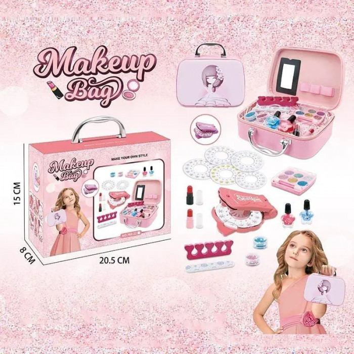 Цей набір для макіяжу стане чудовим подарунком для маленьких модниць, які хочуть виглядати яскраво та стильно.. Усі елементи компактно розміщуються у стильній косметичці, що робить його зручним для зберігання та транспортування. Кожна маленька модниця може експериментувати зі своїм виглядом та створювати безліч унікальних образів.