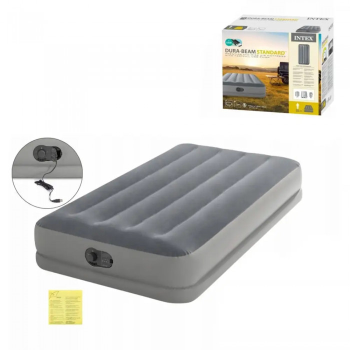 Технічні характеристики товару "Надувна кровать Intex 64112, 99 х 191 х 30 см, вбудований електронасос від USB. Односпальна"