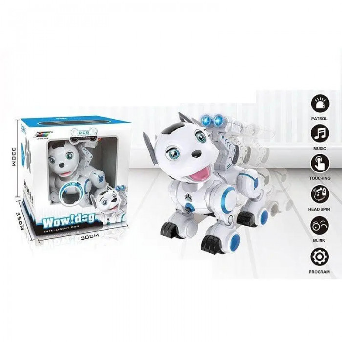 Інтерактивний песик стане справжнім другом для дитини! Він уміє ходити, танцювати під музику, реагувати на дотики (завдяки сенсорним ділянкам на голові) та кліпати очима наче справжній улюбленець. Завдяки режиму програмування малюк зможе сам задавати рухи та вигадувати нові сценарії гри. Яскраве підсвічування та реалістичні звуки роблять гру ще захопливішою, а режим патрулювання додасть динаміки та веселощів у дитячі розваги!