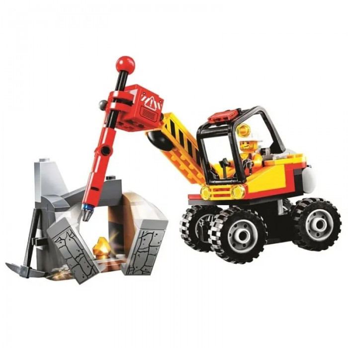 Конструктор "Cities" (арт. 10874) Мощный горный разделитель 132 детали Конструктор 10874 "Мощный горный разделитель" окунает нас в увлекательнийшую ролевую игру. Кто же не мечтает о добыче золотых самородков. Но чаще всего желанный нами объект скрыт за большими скалами, и справиться с этой задачей может только надежная, мощная техника, со стильным дизайном, такая как трактор для горных работ 10874. Крутящаяся кабина позволяет быстро сменить курс, а четыре массивных колеса способны выдержать любую трудность дорог. А с помощью глубокого протектора становиться намного легче маневрировать на неровной поверхности на который любая другая машина бы не справилась.Корпус покрашен в яркие желто- красный цвета. Надежная откидывающаяся назад кабина внутри которой находиться удобное синее сидение для шахтера.Рабочий в оранжевой майке, синих штанах и надежно защищающей белой каске с фонарем, с помощью рычагов он управляет подвижной стрелой трактора. Поднимаясь и опускаясь, он вбивается в скалу, разбивая ее на несколько осколков. Для более эффективной работы используется новейшая отбойная конструкция, включающий в себя пружинящую рукоятку.Но даже после преодоления преграды на пути возникает защитник золотых самородков, светящийся паук, и только после победы над ним можно смело завершать работу. В общем аналог Сити не оставит равнодушным юного почитателя данной серии наборов. Размер горного трактора составляет 12х11х6 см. Также в наборе вы сможете найти: - часть скалы (5х5х3 см) с двумя отваливающиеся частями - " паука" который светится в темноте и охраняет самородки - рабочего в униформе и защитной каске с фонариком - аксессуары : кирка прикрепленная к скале, и самородок.
