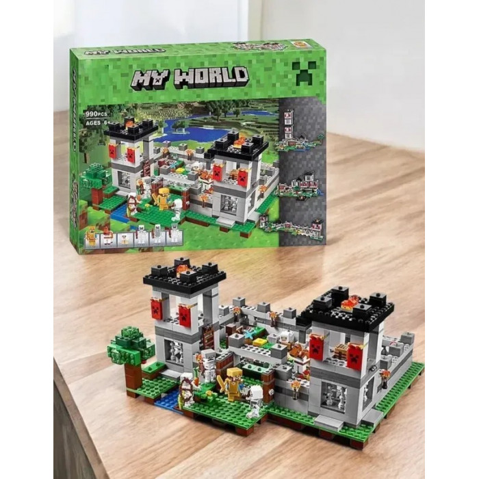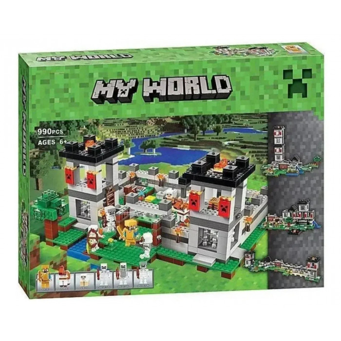 Конструктор - Крепость (арт. 10472) Большой блочный конструктор - Крепость Майнкрафт позволяет использовать несколько вариантов сборки, в результате чего вы получите различные варианты самой готовой крепости. Неприступные стены, высокие сторожевые башни, крепкие ворота, лестницы и потайные проходы - все это собрано из серых квадратных блоков, напоминающих настоящий гранит. Крепость принадлежит темным силам и охранниками здесь стоят скелеты с луками. За непреступными стенами томятся в заточении Конь и Овечка. Стиву очень хочется освободить этих животных и вернуть их в свое владение. Для этого Стив надел улучшенные золотые доспехи и вооружился мощным мечом. Для такого отважного воина, как Стив, три скелета с луками на входе в крепость не станут серьезной помехой... Количество деталей: 990 шт. Количество человечков: 4 шт. + 2 животных Размер коробки: 51 х 38 х 8 см Рекомендуемый возраст: от 6 лет.