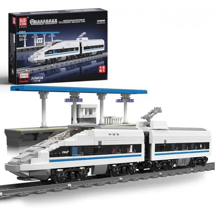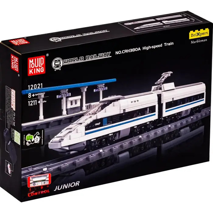 Конструктор "Высокоскоростной поезд CRH380A из ДУ" от производителя Mould King полностью совместим с Лего. Постройте свой мир железных дорог на радиоуправлении — перед запуском соберите модель современного японского поезда для работы на скоростных железнодорожных магистралях и небольшую платформу для высадки пассажиров. Набор с пультом управления разработан в духе коллекции Creator: максимальная реалистичность, узнаваемое бело-синее исполнение локомотива и пассажирского вагона, много мелких деталей.